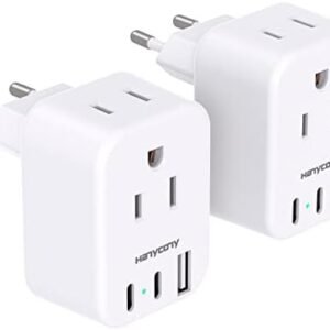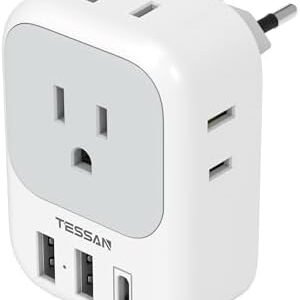 Product Description 5 in 1 European Travel Plug Adapter This European Travel Plug Adapter can turn 1 Type C Plug Adapter into 2 American AC outlets and 3 USB ports, charge 5 devices at a time. No need to carry extra adapter, this Plug Adapter American to Europe can charge…