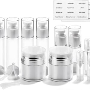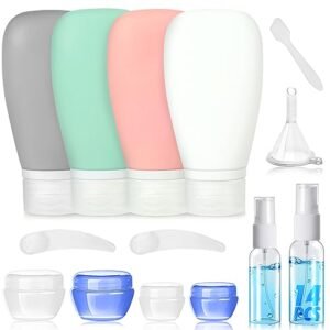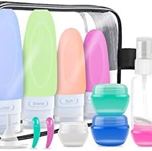 GHigh Quality Designed: high-grade silicone bottles are safe to use, they are sturdy, durable also very flexible, eco-friendly travel bottles set is good to our enviroment; It provides you a better user experience.3oz TSA Airline Carry on Approved: Set of small bottles, perfect for shampoo, conditioner, body wash, lotion and…