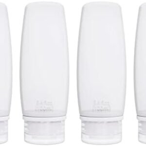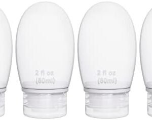 Product Description TSA Approved Silicone Travel Bottles: 4 Pieces 2 OZ Silicone Travel Bottles which are made of top grade silicone and leak proof.Effective Travel Accessory: These silicone travel bottles are good for Hair Conditioner, Body Lotion and Facial Cleanser Bath Shower Gels, Hair Shampoo, Liquid Hand Soup, Liquid Soup…