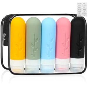 Product Description The travel bottles for toiletries is a set of five 90ml silicone bottles designed for carrying toiletries when traveling. The bottles are BPA-free, TSA approved, leak-proof, and refillable, making them ideal for carrying liquids such as lotion, shampoo, conditioner, and other personal care products. – The silicone goes…
