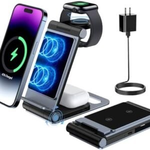 Product Description The video showcases the product in use.The video guides you through product setup.The video compares multiple products.The video shows the product being unpacked. 1 Foldable & Portable 2 Travel Size 3 Easy To Carry 🔗【3 in 1 Wireless Charger】If you’re an Apple aficionado with an Apple Watch, iPhone,…
