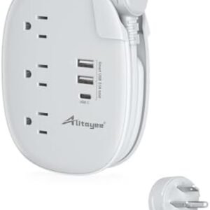 Product Description 6-IN-1 USB C Travel Power strip 3ft Wrapped Around Extension Cord Unique Slot/fillister Design for Cable and Plug Satisfactory Wrapped Cord 3ft length provides right reach from a wall outlet to nightstand or desk, and cord wrap around the body of the strip for efficient storage.It can be…