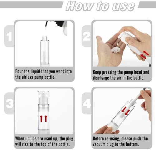 【Airless Vacuum Design】Our airless pump bottles feature an innovative airless vacuum and without-straw design, the use of atmospheric pressure to push the piston at the bottom of the bottle forward to extrude the emulsion, preventing your liquids from losing potency and freshness due to air contact oxidation.You can use it completely until there is nothing left.