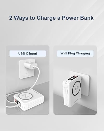 Versatile Charging Options: Equipped with 5 output ports and 2 input methods, power bank can simultaneously charge up to 5 devices. It supports both built-in plug charging, cable charging and wireless magnetic charging, offering flexibility and convenience in charging.