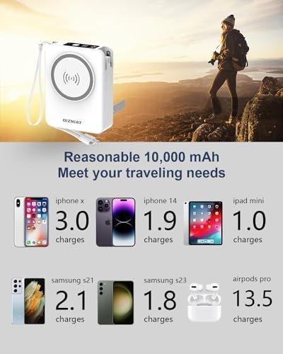 Real-Time Power Monitoring: Portable charger features an LED screen that displays the remaining battery life, so you can easily monitor your power levels at a glance. With a robust 10000mAh battery capacity, you’ll have ample power on the go.