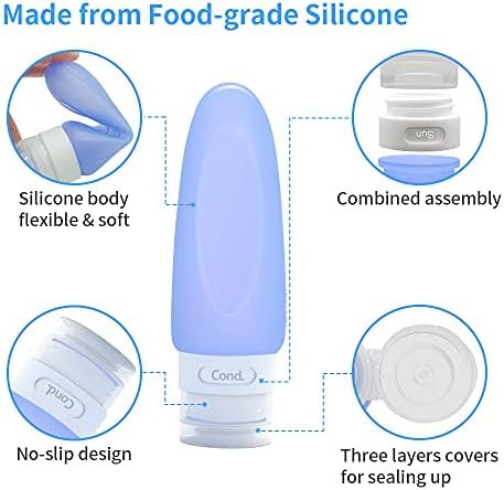 Food Grade BPA Free Silicone: The travel toiletry bottles are made of high-quality BPA-free silicone, ensuring durability and safety for storing all types of liquids, including shampoo, conditioner, lotion, is the perfect travel essential.