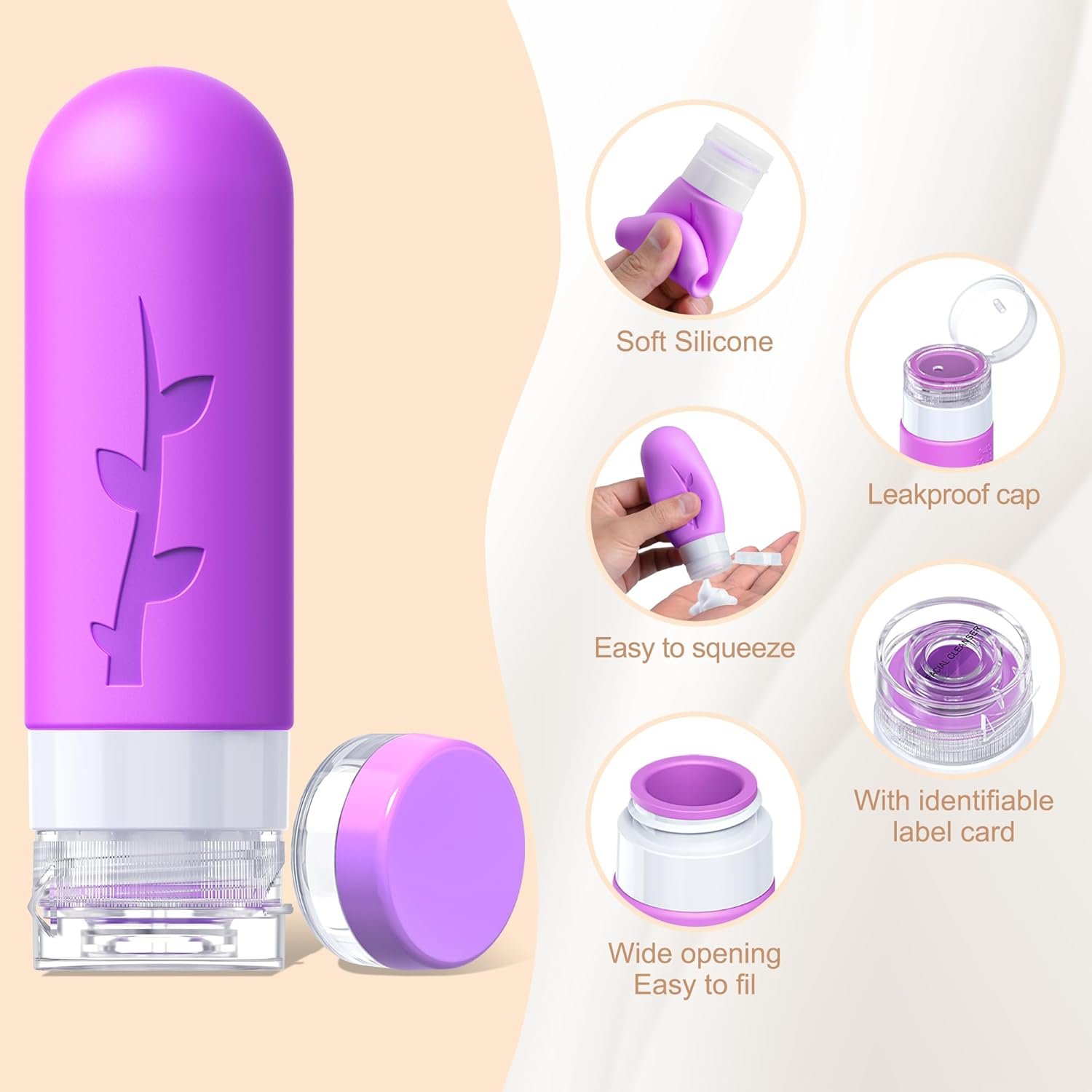 【Leak Proof Travel Bottles】The silicone bottles are designed with 3-layer leak-proof with a sturdy flip-top lid and a drip-free valve to protect your bottle from spills, leaks or drips during transport, prevent your expensive cosmetics from leaking during travel, with our unique leak-proof design