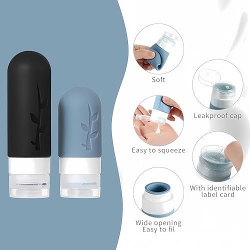 Tsa Approved Leak Proof Travel Toiletries Bottles: The silicone bottles are designed with 3-layer leak-proof with a sturdy flip-top lid to protect your bottle from spills, leaks or drips during transport, prevent your expensive cosmetics from leaking during travel, with our unique leak-proof design