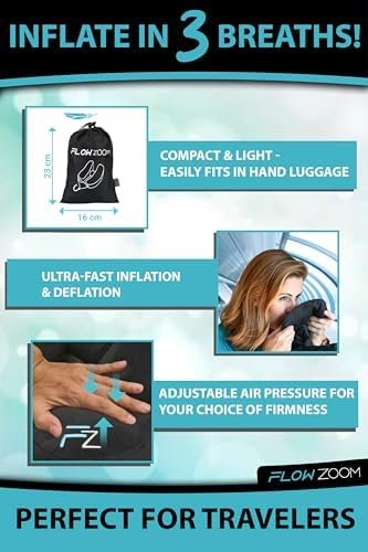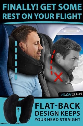 Airplane Sleep Support Redefined: The slim back of our inflatable pillow for airplane travel prevents your head from being pushed forward, letting you lean back and relax. This neck travel pillow is a game-changer in your travel essentials for flying!