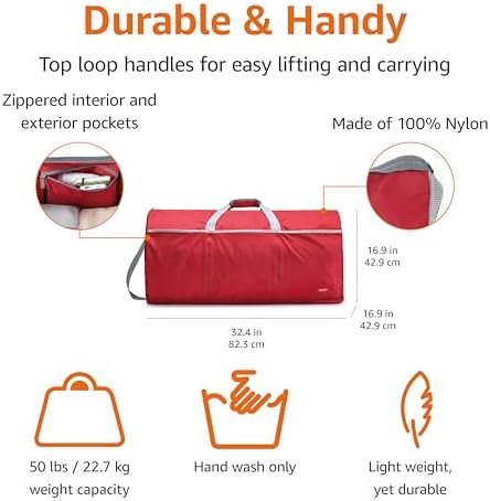 Durable zipper closure; top loop handles for easily lifting and carrying; collapsible for simple storing