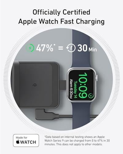 Time-Saver for Time Keepers: Quickly power up your Apple Watch Series 9 to 47% in just 30 minutes thanks to the MFW certification—significantly faster than non-certified chargers.