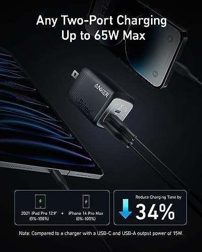 65W Max Two-Port Charging: Whether you use both USB-C ports or a combination of USB-C and USB-A ports, enjoy fast and efficient charging with a maximum output of 65W.