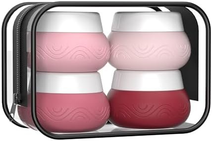 TSA Approved Small Travel Containers: Includes 4 small silicone cream jars (1.01floz/30ml each); 4 spatulas for easy scooping; a clear zipper bag; and 18 waterproof labels. These travel lotion containers are lightweight and convenient for travel