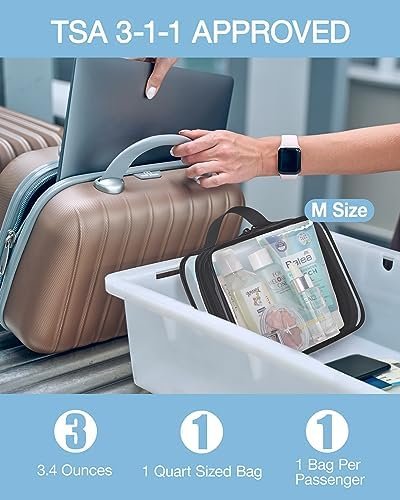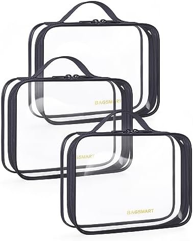 Carry-on Size: The 8.2 x 2 x 6 inch travel toiletries bags three pack strictly follows the TSA 3-1-1 liquids rule; With a TSA quart size travel bag, you can easily and quickly pass through security screening at the airport, saving time and reducing stress