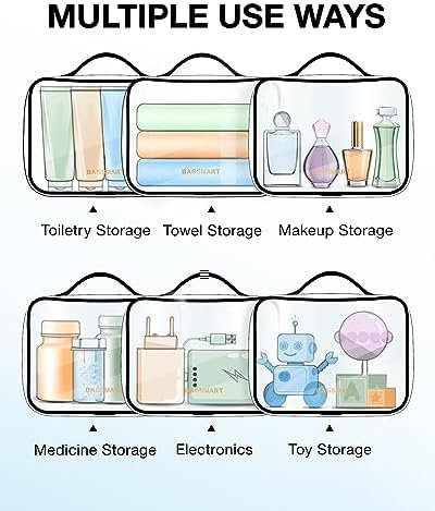 Transparent for Easy Access: The clear travel bag with a large top opening allows for easy access to what you need; The three pack is perfect for accommodating different storage needs; It is suitable for travel bottles, as well as for storing cosmetics, toiletries, toys, and small items