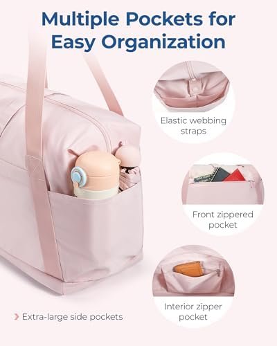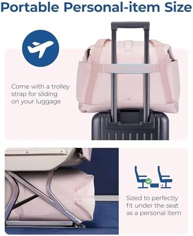 Travel friendly: The sleeve on the backside allows you to slide the bag over a rolling suitcase, it can get you through the airport in comfort. the tote bag also comes with 1 spacious compartment, 1 large front pocket+1 internal zippered pocket + 2 side pockets. Convenient for you to quickly organize your travel essentials for flying