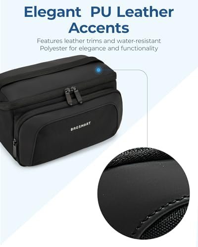 ๐„๐ฅ๐ž๐ ๐š๐ง๐ญ ๐๐” ๐‹๐ž๐š๐ญ๐ก๐ž๐ซ ๐€๐œ๐œ๐ž๐ง๐ญ๐ฌ๏ผšMens Toiletry bag features PU leather trims and water-resistant polyester for elegance and functionality.
