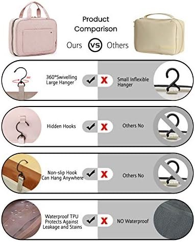 Easy to Use: Stow-away 360-degree swivel non-slip metal hook for versatile hanging options; Two-way zipper closure for quick access; Carry handle doubles as its hanging strap