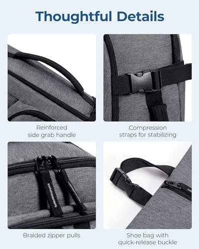 Spacious & Multi-Compartments: BAGSMART Travel Backpack is a versatile carry on backpack that features a generous size of 18.1″ x 12.6″ x 7.5″ providing a whopping 40L capacity. With multiple compartments including a Top external zipped pocket, zippered bottom pocket, front zippered pocket, separate laptop compartment, and bottle pocket, this backpack is a perfect companion for travelers seeking efficient storage solutions.