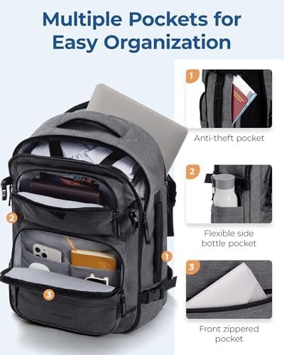 Versatility On The Go: This backpack for travel offers diverse carrying options – wear it as a traditional backpack, carry it by hand, or conveniently attach it to your luggage handle for swift movement through airports. Its adaptability makes it an airplan-approved backpack suitable for various travel scenarios.