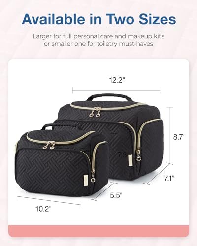 𝐋𝐚𝐫𝐠𝐞 𝐂𝐚𝐩𝐚𝐜𝐢𝐭𝐲: Medium size – 10.2”L x 5.5”Wx 7.3”H. Large size – 12.2”L x 7.1”Wx 8.7”H. The travel toiletry bag can perfectly organize your necessary travel toiletries and makeup storage