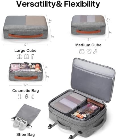 3 Packing Cubes + 1 Shoe Pocket:Streamline your packing with three packing cubes and a dedicated shoe pocket. The shoe pocket keeps shoes separate, and the built-in USB port (charger not included) lets you charge devices on the go