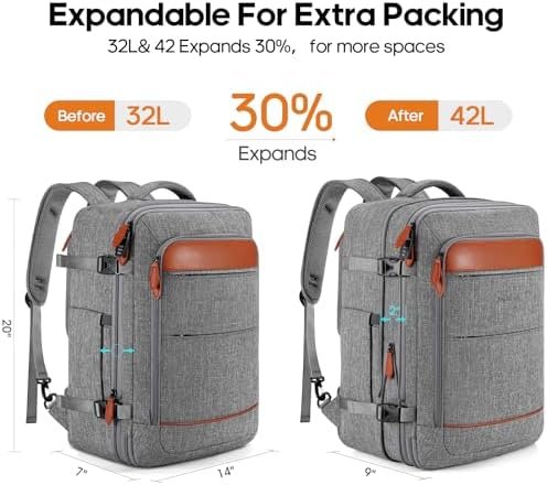 Large Capacity Backpack for Multi-Purpose Travel: Experience stylish travel with this spacious 42L backpack, perfect for 3-7 days of essentials. Measuring 20x14x7 inches, it’s ideal for adventures like travel, business trips, camping, and cruises