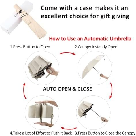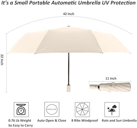 Automatic Open and Close Umbrella: Easy to open and close, with push button auto-open and auto-close feature. This folding umbrella where you press a button and it automatically open, then close when you press it again