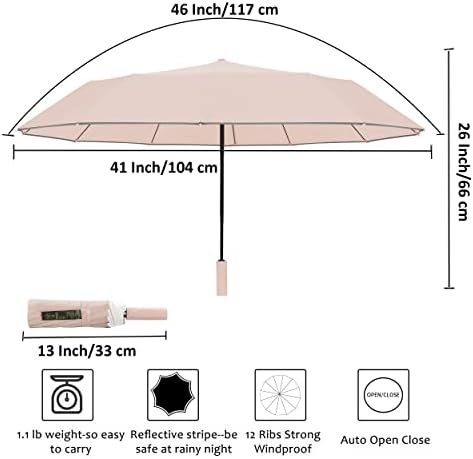 🌂[Travel Umbrella Medium Size]: 12 ribs make it a so strong big umbrella, 1.1 lb lightweight & opens with a 46” arc canopy which is a large umbrella for 2 people, but it takes up a small space after collapse, very nice folding umbrella for women and men