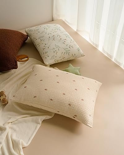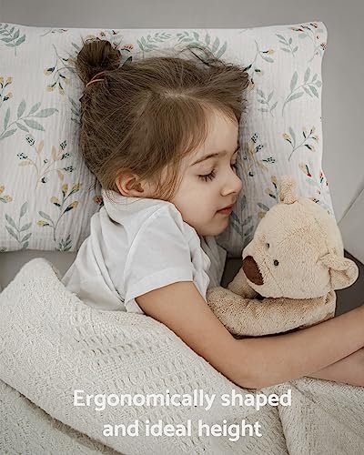 Toddler Pillow with Muslin Pillowcase: Our toddler pillow comes with a pillowcase made of extra soft muslin cotton, which is cozy and breathable to prevent overheating and stays soft after washing