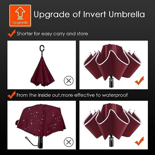 ☂Reflective Stripe Design and Safer: This upgrade windproof inverted umbrella is surrounded by reflective stripes, which offers 360° high visibility. The reflective stripe delivers high visibility during low light and rainy conditions to alert cars and vehicles, for extra safety in low visibility conditions, important for children, pedestrians and commuters, you will be safer when walk in dark and rain.