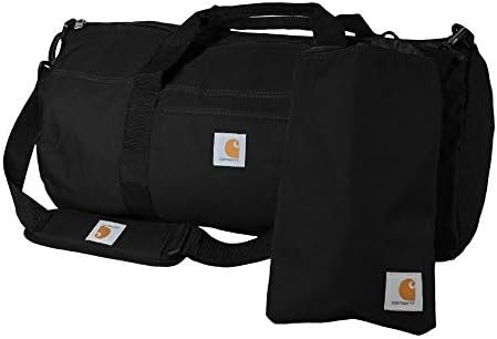 Removable, adjustable shoulder strap with pad; YKK zippers, metal hardware, comfort-grip haul handles, triple needle stitching, Carhartt logo patch