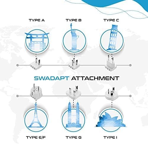 Ceptics World-Way Includes 6 adapters – Europe (Type C), UK (Type G), US (Type B), Australia/China (Type I), Germany/France (Type E/F), Japan (Type A) compatible outlets in most of Europe, Asia and more. Other SWADAPT attachments sold separately