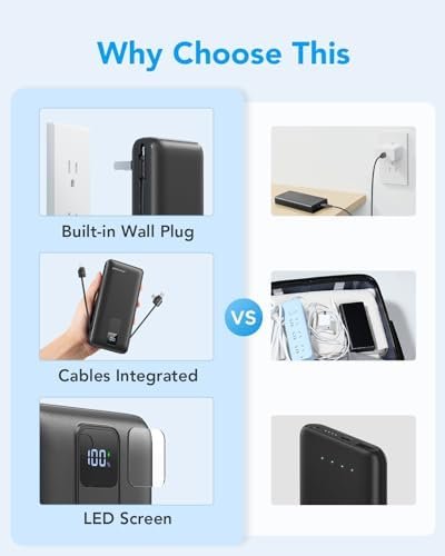 The biggest disadvantage of this power bank is the weight of this power bank is around 12.99 ounces, which is just a bit heavy, but the weight matches the huge juice, fast charging, built-in cables, and wall plug, and broad compatibility.