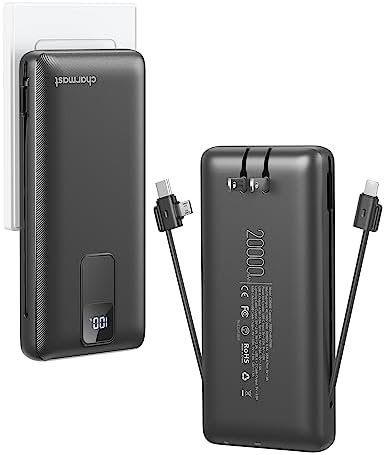Portable Charger with Built-in Cables and Wall Plug: Two cords and wall plugs integrated allows the Charmast power bank to be compatible with all cellphones, so you don’t need to bring extra chargers or get frustrated with a tangled mess of wires.
