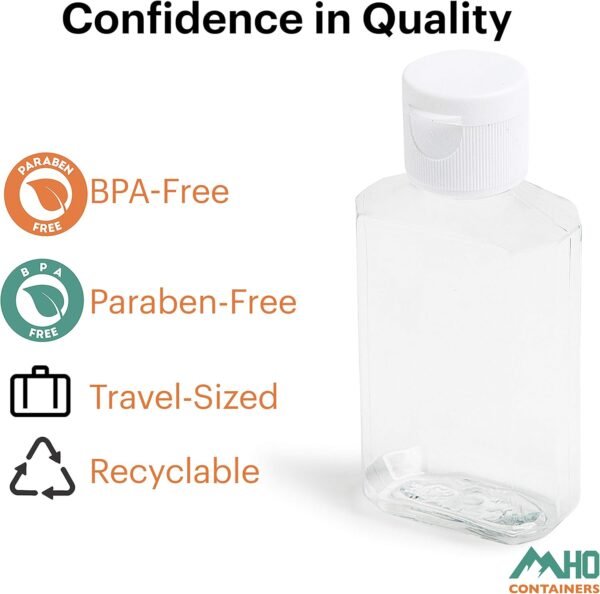 FLIP-CAP TOP: Each bottle features a sturdy white flip-cap lid and clear rectangular squeeze bottle. BPA-free and paraben-free.