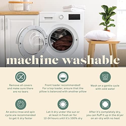 USAGE AND CARE: For indoor use, with all types of shams & covers, before first use, and as needed, fluff up your pillow a few times, to get it a full plump look, this will help it last for years!