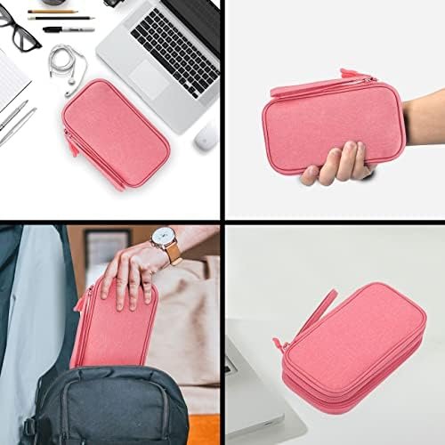 Applications:It can hold power adapters, charger, batteries, power bank,hard drive, memory cards,digital camera,pen,selfie stick,cables, external driver, flashdrive, basic first aid items, chargers, several USB cables, scissors, makeup, passport ,memory cards,key, smartphones and such. This cable organizer bag great for storage everything to travel and family use
