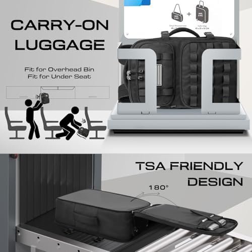 Carry on Backpack for Airplanes: With dimensions of 11.8*7.1*17.3in, our tactical backpack for men meets most airline carry-on luggage regulations and TSA standards. The dedicated laptop compartment of the travel backpack not only opens 180 degrees to allow you to easily pass through security check, but also provides security for the laptop, while And the main compartment of the backpack for travel features a suitcase-style opening for quick access during your security check