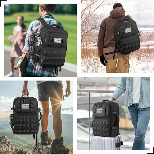 Molle Modular Design: Stay organized and prepared on-the-go with this tactical backpack featuring MOLLE webbing for attaching pouches and gear. The military backpack for men comes with an American flag patch or you can add your own to the velcro panel. Luggage strap of molle backpack provides a more flexible carrying experience, and the organizer pocket can store the shoulder straps, as well as daily necessities. This travel backpack is versatile and practical for traveling or any adventure
