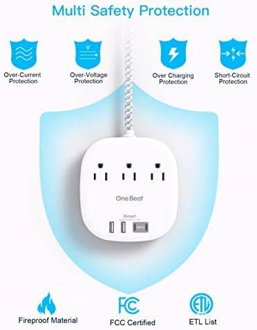【Multiple Safety Protection】 – Our power strip are certified by ETL and FCC, high-quality components, 1382℉ fireproof, the power strip can prevent your electric devices from over-current/over-charge/short circuit/over-heated.