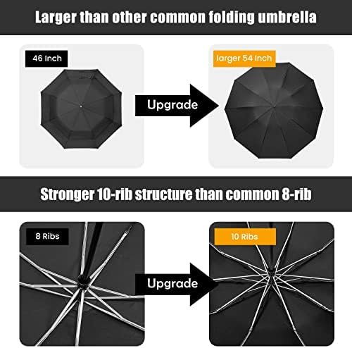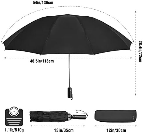Extra Large Size Compact Umbrella: 54″ in arc canopy, 46.5″ in diameter, a golf size umbrella fits 2 people, which can be collapsible to 13″, small size for easy carrying and ideal to be a travel umbrella.