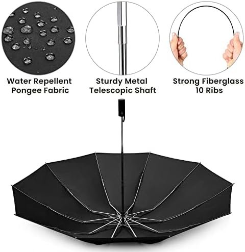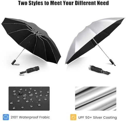 Auto Open & Close: One-button opening and closing design, convenient for one-handed operation, you can quickly open or close the umbrella at the press of a button. No more dealing with the hassle of manual rain umbrellas; easily closes to make getting into cars and buildings a breeze.