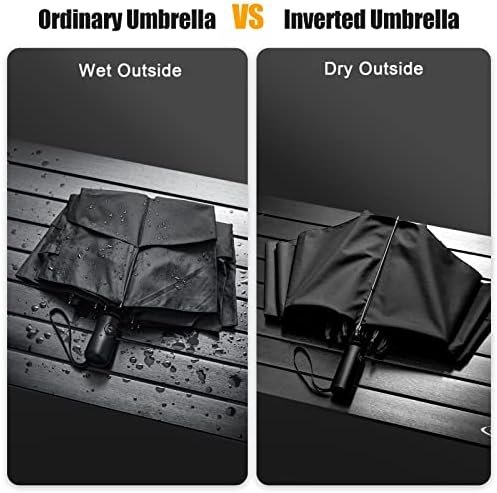 Inverted Folding Design: This reverse umbrella takes an inside-out design. When you close it and get into your car or house, the wet side will be on the inside of the umbrella to prevent water from dripping everywhere.
