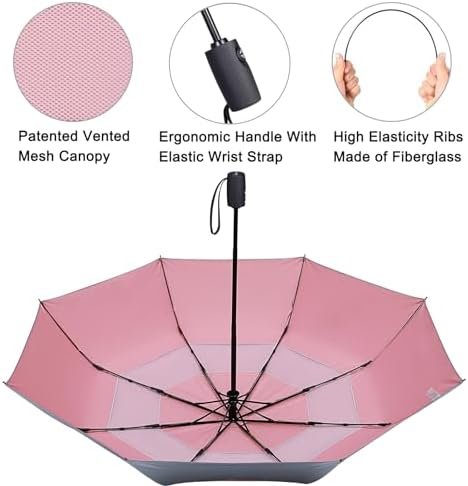 Made of thick silver coating layer and double mesh vented system, this sun umbrella is heat resistant, windproof, and keep you cool under the sun with high UPF rating.