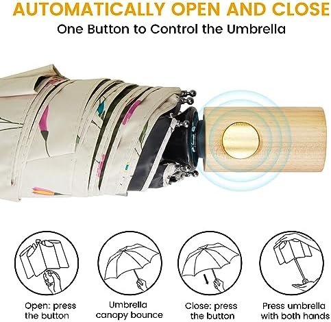 Automatic Open and Close Umbrella: Folding umbrella has auto open and close function, you don’t need to fiddle with the umbrella when it is raining. The ergonomic umbrella wooden handle will provide comfortable holding and will complement the classic elegant look.