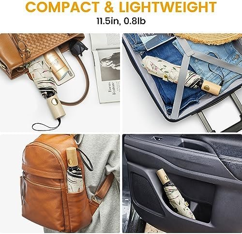 Compact Travel Size: This compact UV umbrella is 42 inch in arc canopy, 38.5 inch in diameter, and weighs 0.8lb. It can be folded to a small size to fit in a medium size purse and takes a small place. It is also lightweight and convenient to carry around.