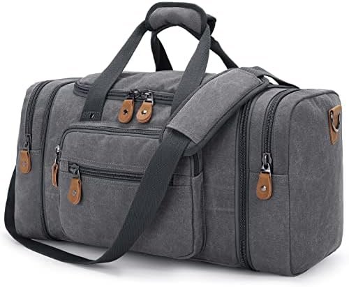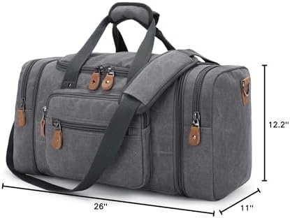 Expandable design: Canvas Travel Duffel Bag measures (L)23.6 x (W)11 x (H)12.2 inches and can be extended to 26 inches with two side zippers. Perfect for carrying on flights as carry-on luggage