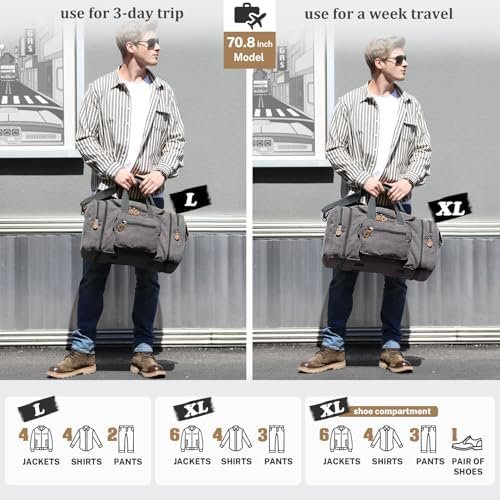 Multipurpose: Suitable for both men and women, the Canvas Travel Duffel Bag can be used as a weekender bag, overnight bag, short-term travel bag, toiletry kit, camping bag, business bag, gym tote, carry-on luggage, or simply as an emergency bag