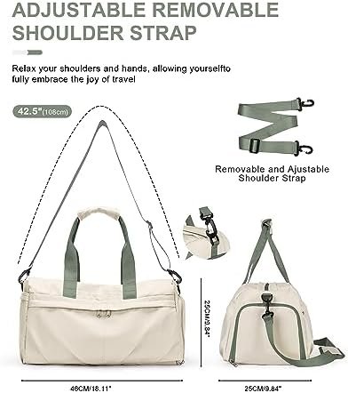 【Adjustable and Detachable Padded Shoulder Strap】The wekkend bag comes with an adjustable and detachable padded shoulder strap. This strap offers versatility in how you carry the small gym bag. You can wear it over your shoulder or across your body, and the padding helps make it more comfortable, especially when carrying the bag for extended periods.